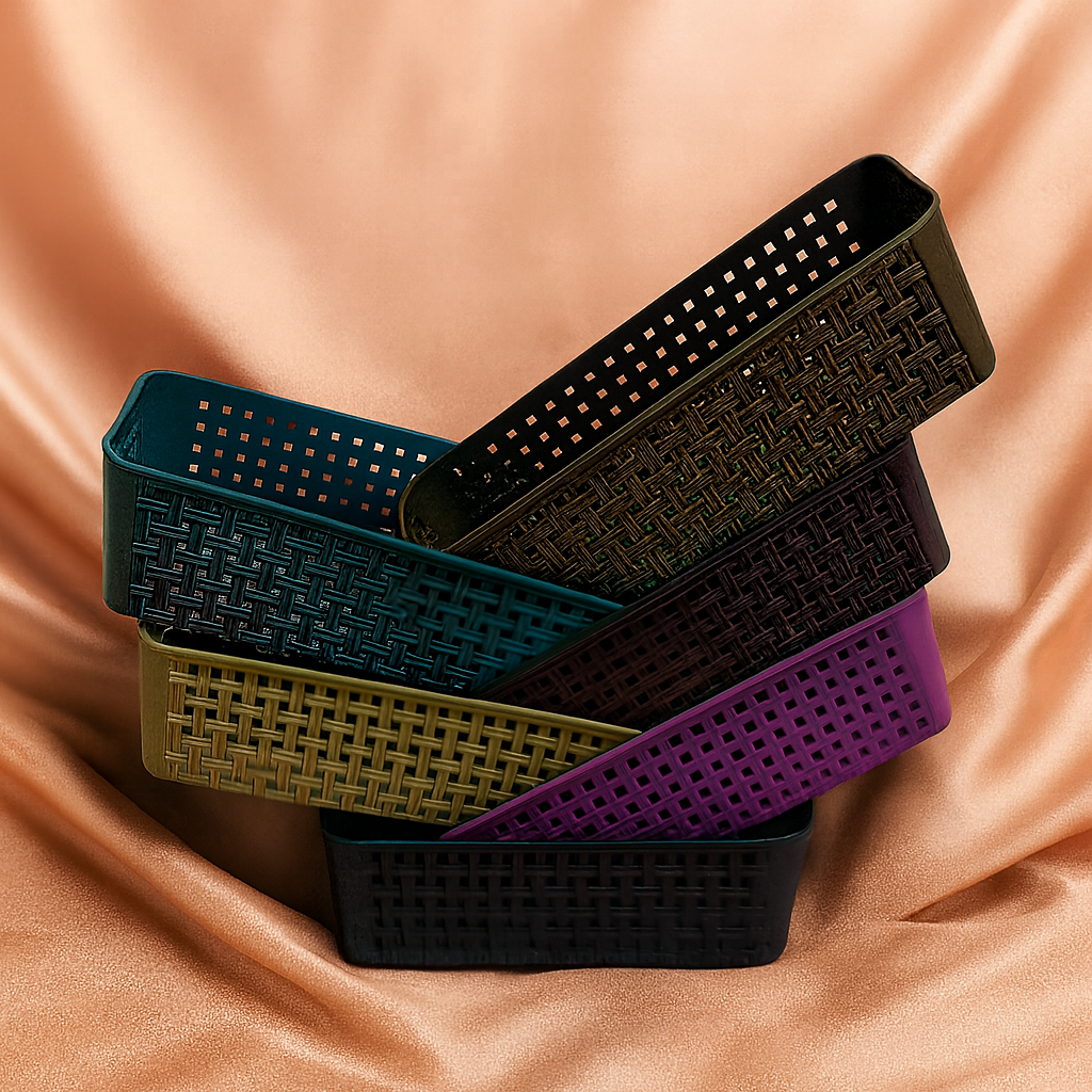 Keep every corner of your home neat and tidy with this Pack of 6 Multi-Use Storage Containers. Designed for bathrooms, desks, kitchens, and bedrooms, these durable organizers help store your stationery, toiletries, jewelry, tools, cosmetics, and more—making your space clutter-free and easy to manage.